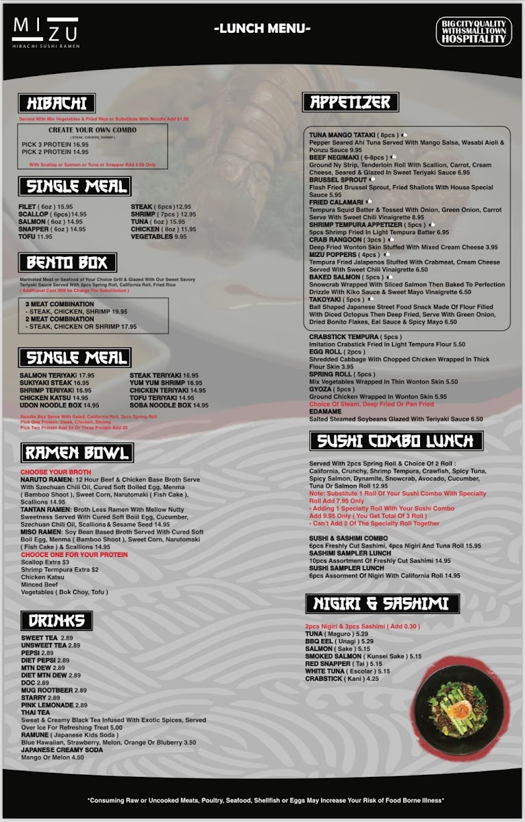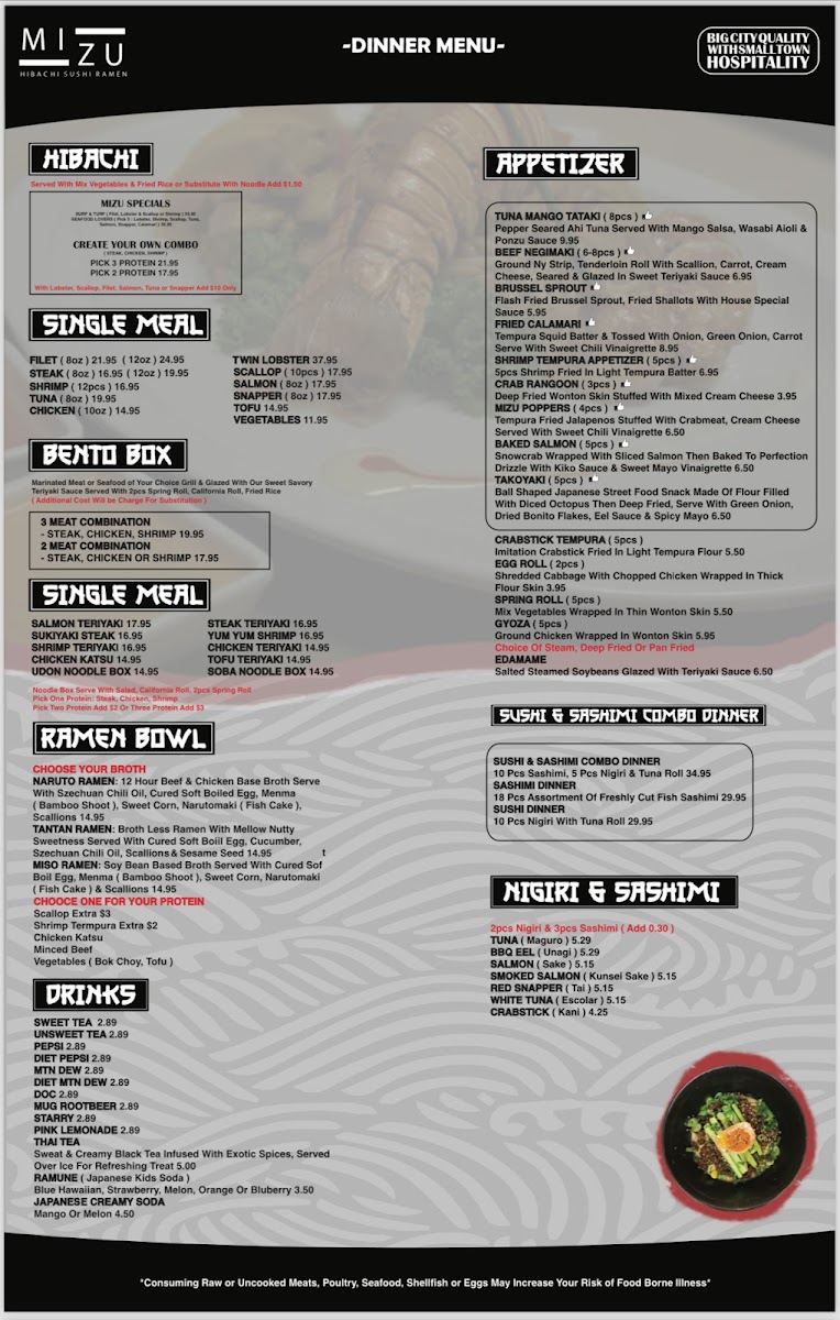 Served With Mix Vegetables & Fried Rice or Substitute With Noodle Add $1.50 CREATE YOUR OWN COMBO (STEAK, CHICKEN, SHRIMP) With Scallop or Salmon or Tuna or Snapper Add 4.95 Only